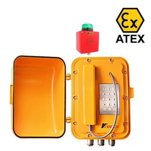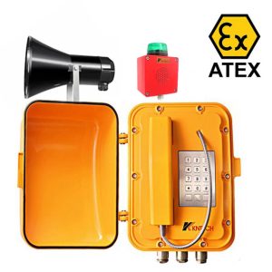 El KNEX6 es un teléfono analógico a prueba de explosiones, certificado por IECEx y ATEX con protección Ex db ib IIB T5 Gb. Este modelo cuenta con un cuerpo de aleación de aluminio fundido, lo que lo hace resistente al vandalismo y al polvo, con un IP66 Clasificación IP65, lo que significa que es resistente al agua y al polvo. Entre sus características principales se incluyen un teclado completo, memoria para hasta 10 números, un micrófono con cancelación de ruido y un auricular compatible con audífonos. Es perfecto para áreas con atmósferas peligrosas de polvo y gas, como la industria petroquímica, túneles y más.